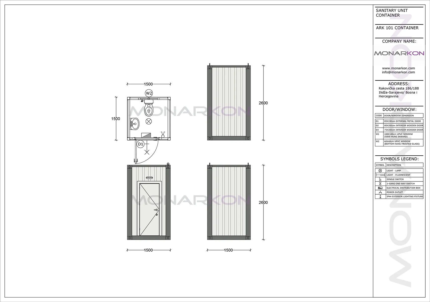 Kao i svi Monarkon proizvodi, ARK 101 izrađen je od kvalitetnih materijala otpornih na vlagu i mehanička oštećenja, uz vrhunsku termoizolaciju zahvaljujući sendvič panelima debljine 60 mm. Modularna konstrukcija omogućava brzu montažu bez zavarivanja, što olakšava postavljanje i premještanje.