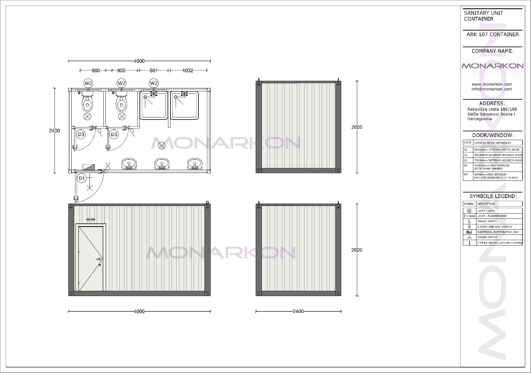 Kao i svi Monarkon proizvodi, ARK 107 izrađen je od kvalitetnih materijala otpornih na vlagu i mehanička oštećenja, uz vrhunsku termoizolaciju zahvaljujući sendvič panelima debljine 60 mm. Modularna konstrukcija omogućava brzu montažu bez zavarivanja, što olakšava postavljanje i premještanje.