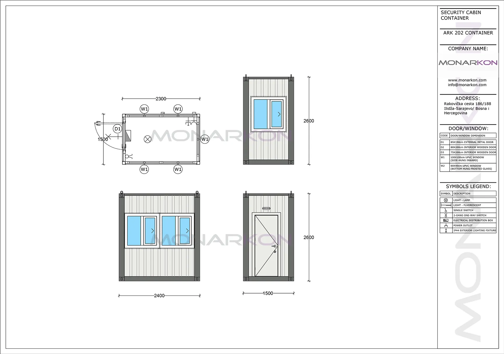 Svi Monarkon kontejneri su proizvedeni u Bosni i Hercegovini, uz mogućnost personalizacije prema vašim potrebama. Odabir boja, raspored prostorija, dodatne instalacije – sve se može prilagoditi. Pored funkcionalnosti, estetski izgled kontejnera je na visokom nivou, čineći ARK 202 idealnim rješenjem za urbane i ruralne sredine.