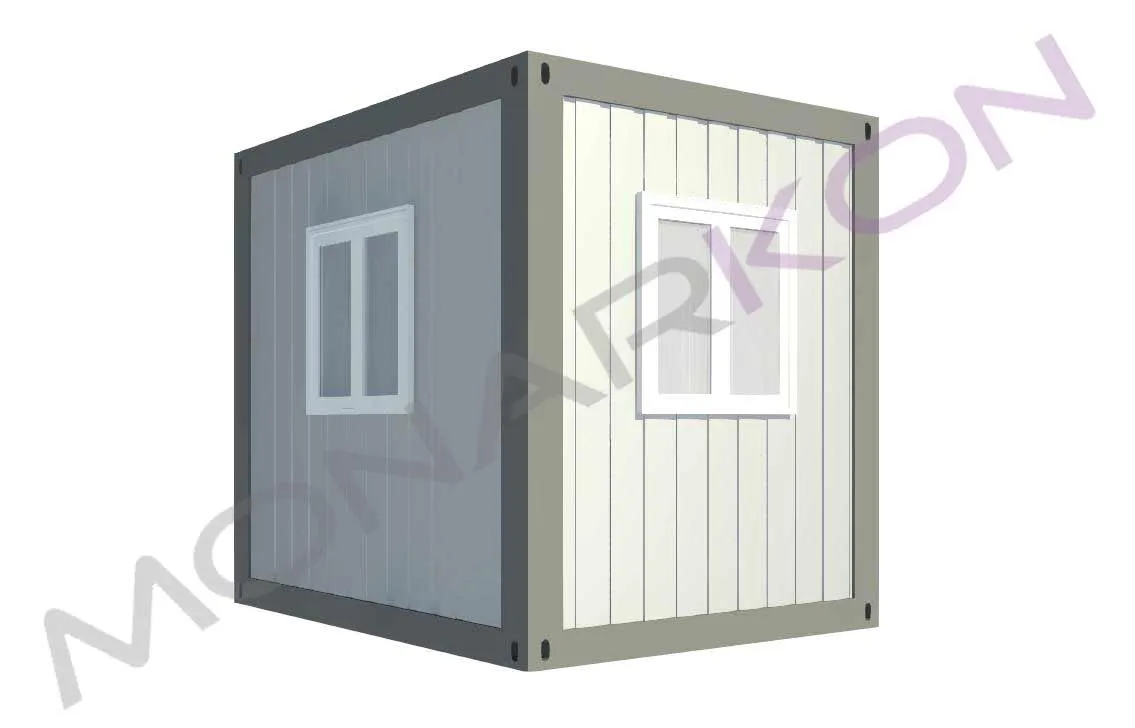 Koristi standardne materijale za modularnu gradnju — sendvič panele debljine 60 mm, čelični okvir, te pouzdane U-PVC prozore s dvostrukim staklom — za izdržljivost i štedu energije.