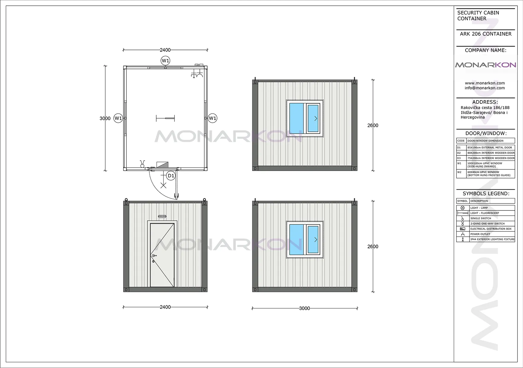 Svi Monarkon kontejneri su proizvedeni u Bosni i Hercegovini, uz mogućnost personalizacije prema vašim potrebama. Odabir boja, raspored prostorija, dodatne instalacije – sve se može prilagoditi. Pored funkcionalnosti, estetski izgled kontejnera je na visokom nivou, čineći ARK 208 idealnim rješenjem za urbane i ruralne sredine.